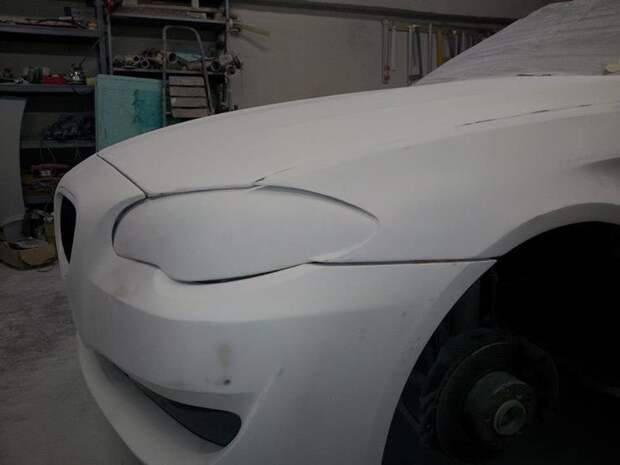 Автомобиль получил новые бамперы, доработанные крылья, облицовку радиатора, капот и крышку багажника. Переднюю и заднюю оптику, а также дверные ручки позаимствовали у оригинальной F10. Двери также получили пластиковые накладки, которые позволили отобразить характерные продольные грани вдоль кузова. Подобная работа требовала ювелирной точности и соблюдения фирменной стилистики баварской марки.