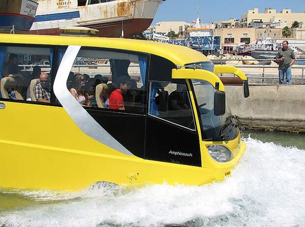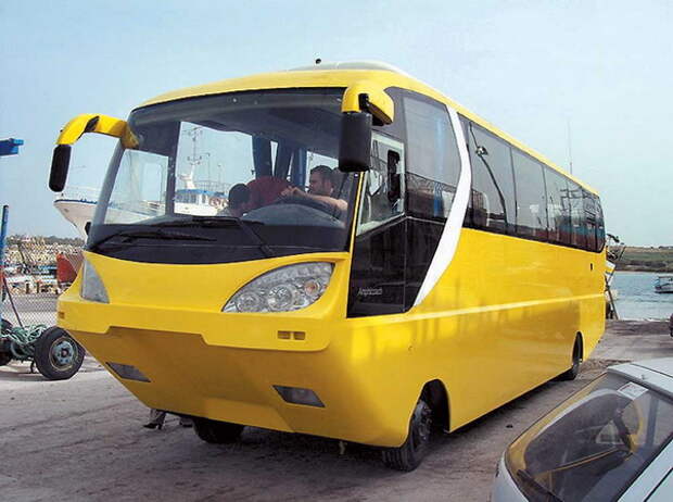 Автобус, который был сконструирован в Англии. Он способен плыть по воде. Он уже поступил в продажу цена 400 тысяч долларов.