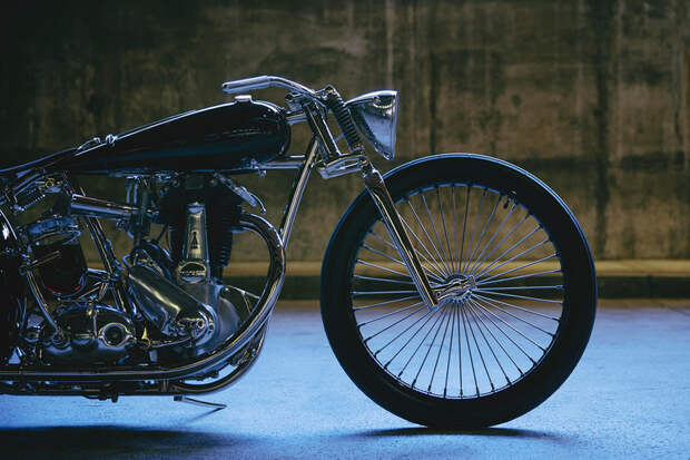 Переднее 23-дюймовое колесо в винтажном "clincher"-стиле, а заднее 19-дюймовый обод Excel скрывается под задним крылом. Шины Firestone в ретро-стиле полностью подходят для этого всего облика мотоцикла.