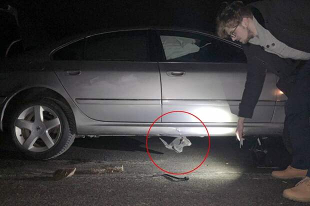 — Вдруг раздался хлопок, в машине выстрелили подушки, появился дым, искры. Я сразу же стал тормозить, включил «аварийку», прижался к обочине. Вышли из машины, смотрим — колесо пробито, вмятины на кузове. Какая-то металлическая штуковина торчала, я даже сначала подумал, что это от моей машины. Но потом стало понятно, что именно она в кузов и прилетела. Не знаю точно, откуда она взялась: на дороге в свете фар я ее не увидел, может, отскочила от другого авто, — рассказал корреспонденту Onliner наш читатель.