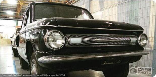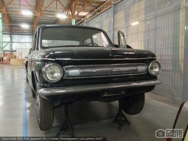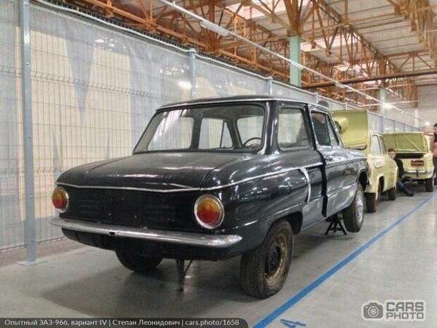 По заводскому обозначению данный опытный образец соответствует названию "Вариант IV". Здесь на самом деле много чего интересного, опытного. Вот, например, "Запорожец" черной окраски: вы когда-нибудь видели хоть один автомобиль ЗАЗ с заводской черной краской? Но знатоки говорят, что все же только для своих выпускались отдельные чёрные машины, а также еще несколько экземпляров для рекламных целей.