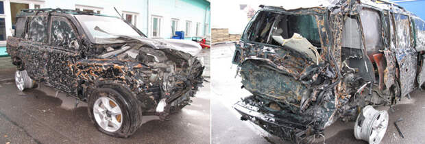 И, судя по всему, отечественная защита все же заслуживает доверия, поскольку в такие «крузаки» зачастую пересаживаются даже VIP-пассажиры. Посмотрите, например, во что превратился Land Cruiser 200 главы Хасавюртовского района Дагестана Д. Салавова, в августе 2010 года испытавший на себе взрыв бомбы около 15-20 кг в тротиловом эквиваленте — в два раза больше, чем у противотанковой мины ТМ-89! На машине живого места нет, чиновник не пострадал.