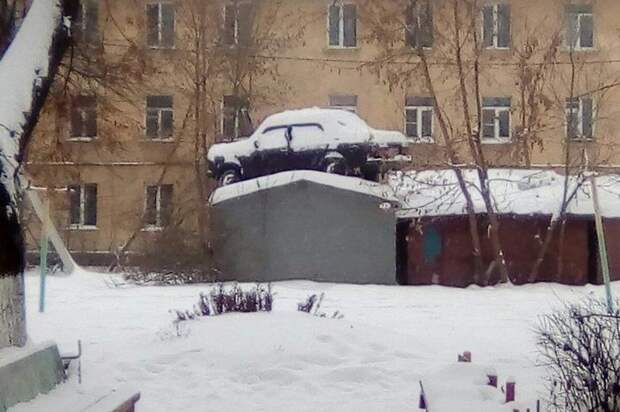 Зимой любой себе может сделать гараж, если есть хорошая лопата